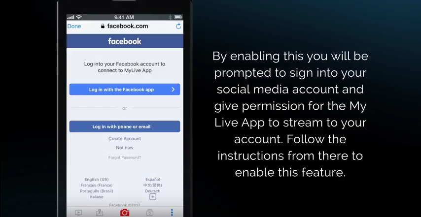 The My L!VE App™ allows you to stream live to social media and other media outlets straight from your smart phone.