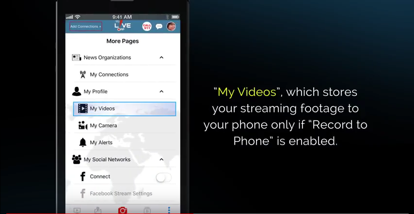 “My Videos”, which stores your streaming footage to your phone only if “Record to Phone” is enabled.