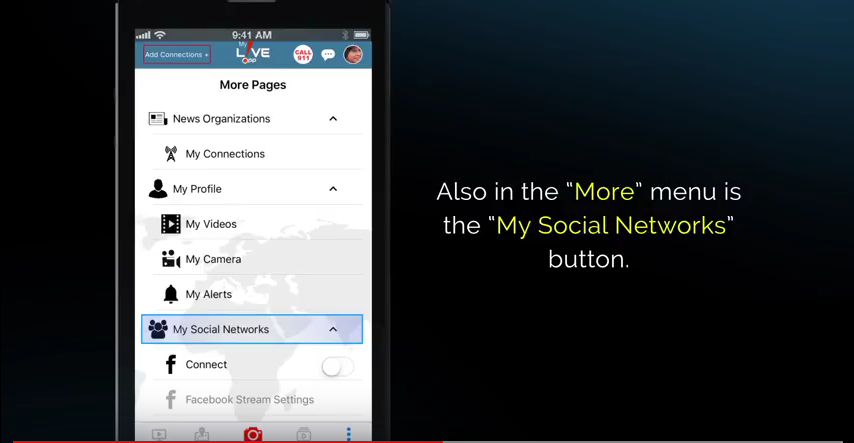 MyL!VE App™ is an innovative smart phone application that allows users to stream videos of any event they are witnessing live to any news station, organization or social media site of their choice. The app puts breaking news and events directly in the hands of the public.